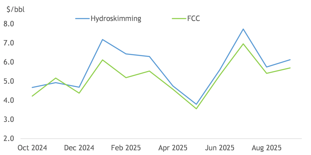 Equinor and Var Energi have recently started production of Johan Castberg, which is a 34.7oAPI crude with 0.16wt% sulphur. Compared with Johan Sverdrup, it is a much lighter and sweeter crude. It is also more paraffinic, which is a good feature for FCC refineries. Based on API gravity and Sulphur, one might think that Johan Castberg has lower value than the other crudes in the Brent complex. However, based on the refining margin scenario that has so far prevailed in 2025, the refining value of Johan Castberg delivered to Rotterdam would have been between $3.50/bbl and $5.50/bbl higher than Forties, which sets the price of Brent very frequently. This is mostly attributable to higher yield of middle distillate.